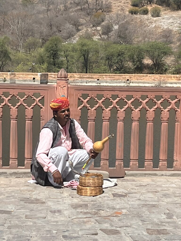 お城の写真を撮ってたらすかさず蛇遣いがやってきてピーヒャラ~と始め、チップをねだってくる。