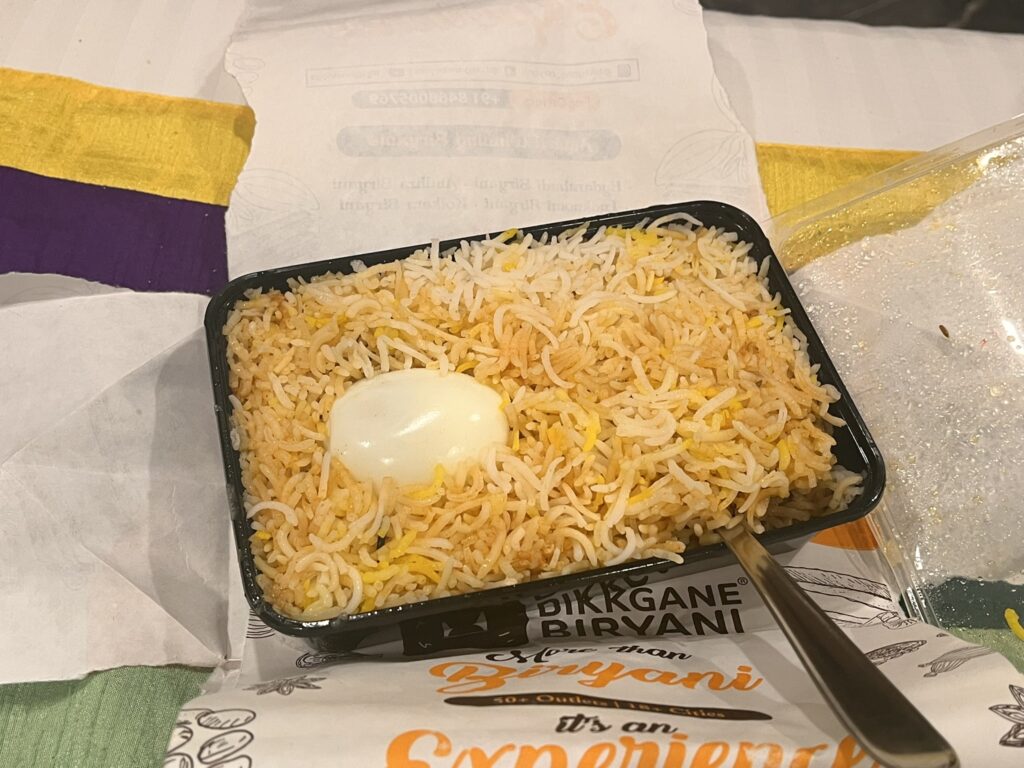 腹が減ったし酒飲みたかったのでツアーコンダクターを呼び、一緒にビリヤニ食べながら酒を飲み交わす。
